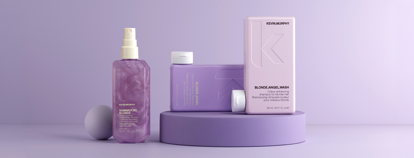 The KEVIN.MUPRHY BLONDE regimen, includes colour-enhancing treatments with purple and cool ash tones, designed specifically to counteract any signs of unwanted brassiness or yellowing to deliver neutral to cool finishes.
